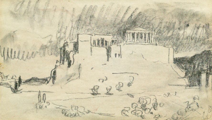 雅典的帕提农神庙对他产生了深远影响,之后,他在许多著作和演讲中都展示了他画的雅典卫城建筑的速写。