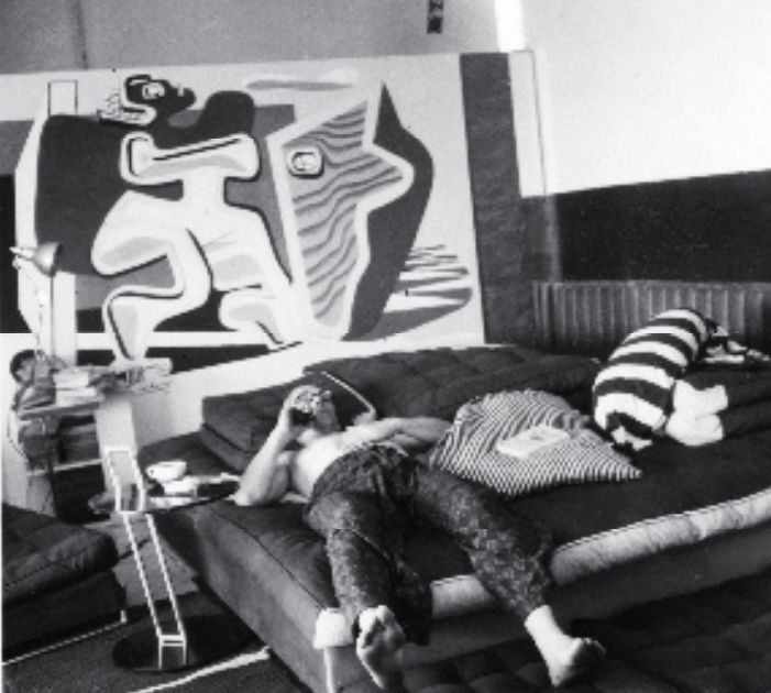 背景中有一幅柯布西耶的画