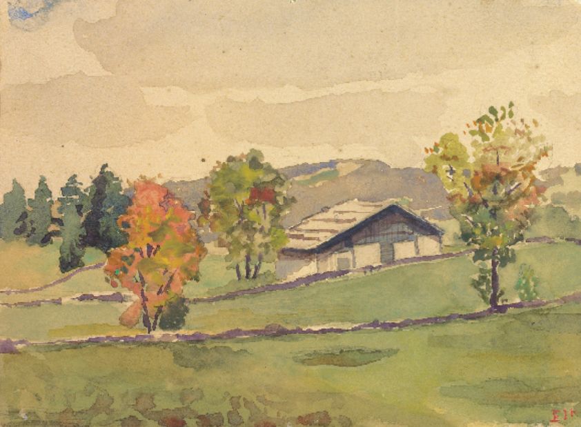让纳雷的汝拉乡村的水彩写生