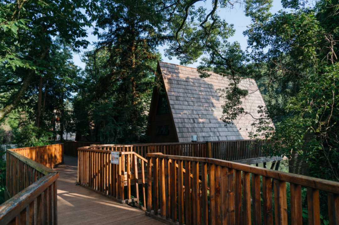 秘的树屋客房,其中有28栋三角树屋、4栋星空穹顶屋,3栋双子树屋。