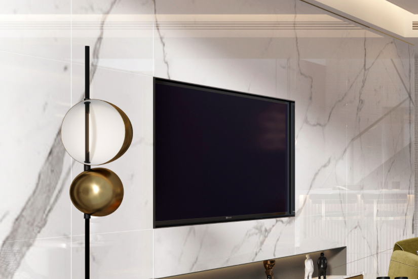 客厅地面是大面积的灰色带花纹的大理石地板砖,温熙的底色潜藏着一种闲情逸致,也诠释出家的自在与归宿。