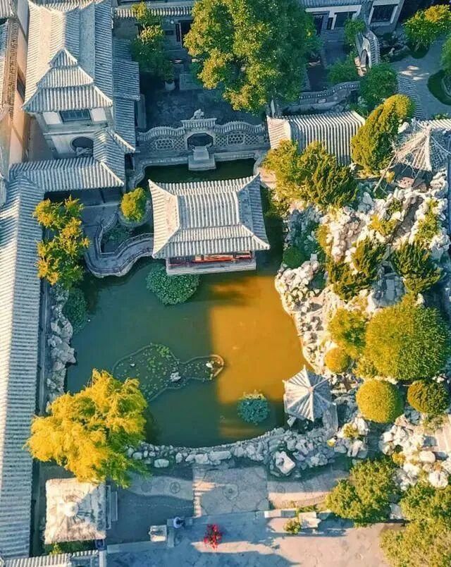 但在这么迷你的空间里,假山、水池、亭台楼阁一应俱全,甚至完美融合了北方园林的四合院和江南园林的山水布局。