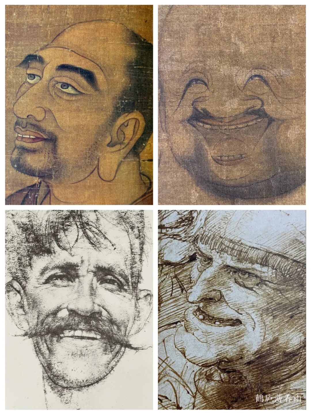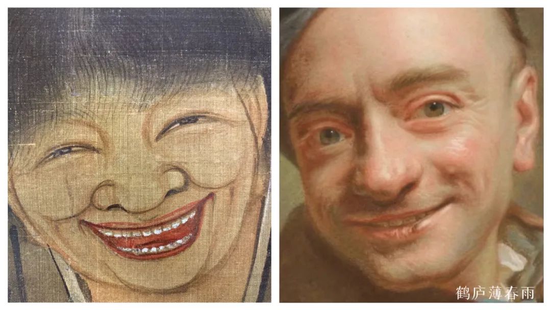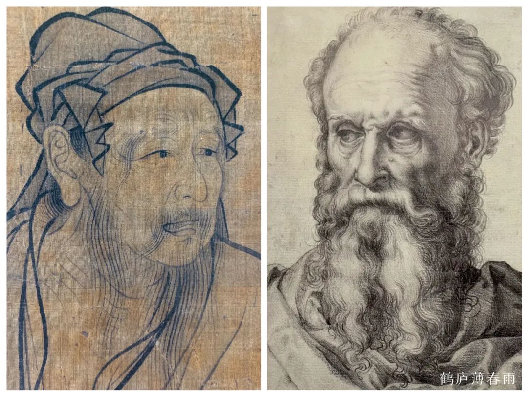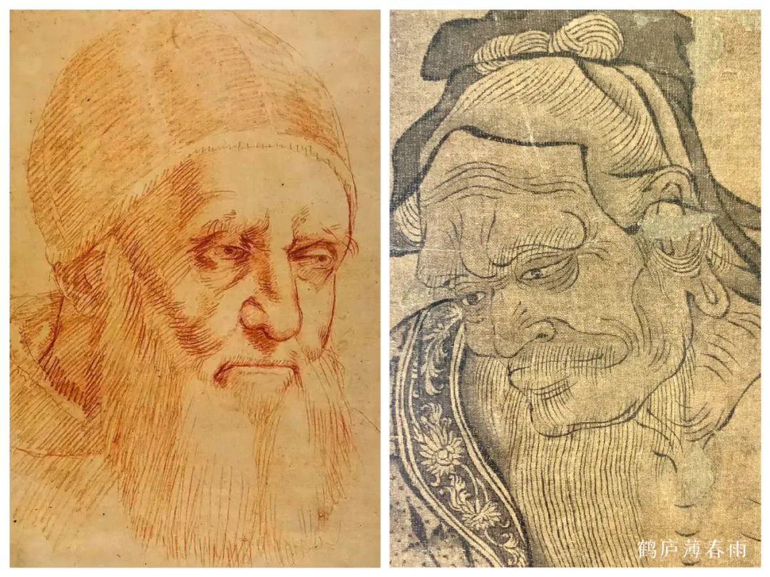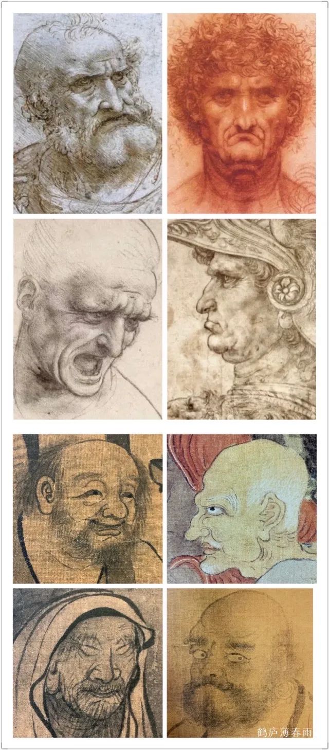 无论是王绎主张描绘的“本真性情”还是达芬奇侧重的“内心意向”,这种“非惟貌人之形似,抑且得人之神气”的画法,都是对形似到神似的一种跨越式的进步,这种画法和主张都是中西方两种绘画的共性所在。着重刻画五官,突显人物气质和夸张人物神情,在明暗及体积结构部分略施皴染,或稍加明暗,即能活灵活现,不喧宾夺主,又不费笔费墨。