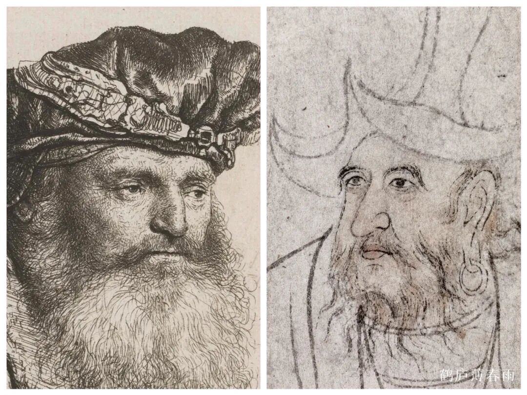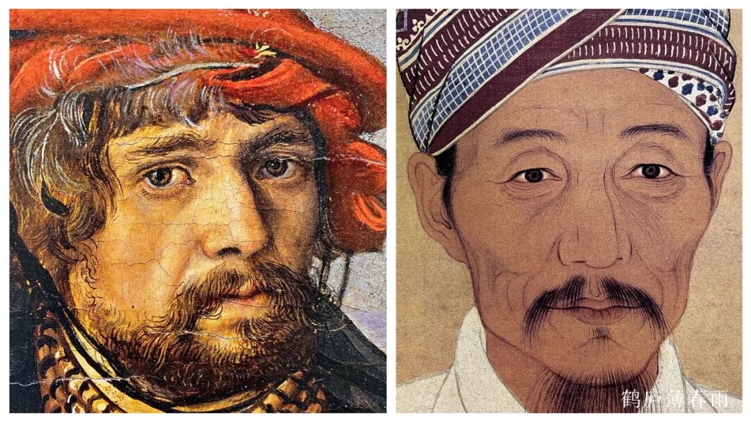 达芬奇自画像、王绎杨竹西小像局部