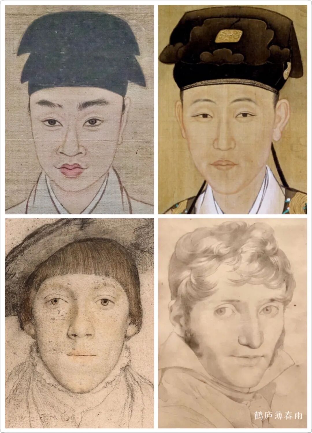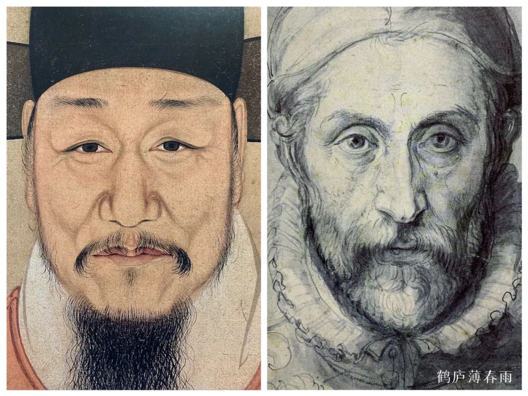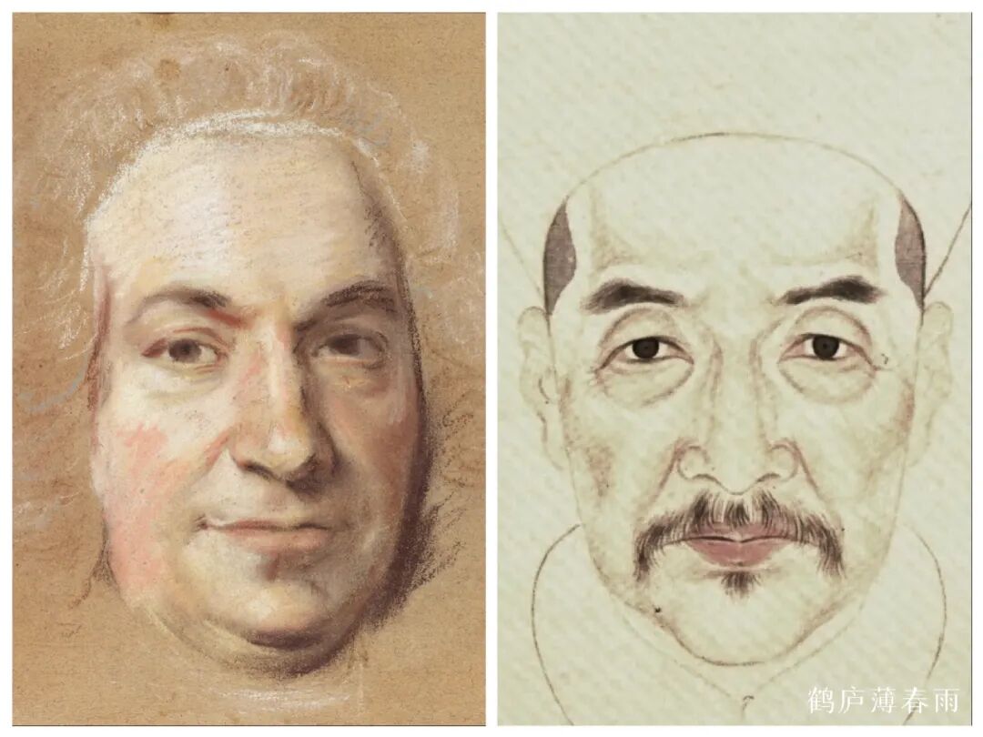 在明末清初之时我国的人物肖像写实技法与西方肖像画法开始接轨,“波臣派”许多肖像画技法与西画多有相似之处,无论是皇家还是文人或是民间此中例子不胜枚举,通过大量对比不难发现,在素描没传入中国以前我国的人物肖像画亦能结构精准、真实自然、神韵皆活、不输西方。
