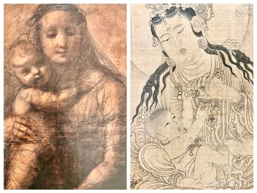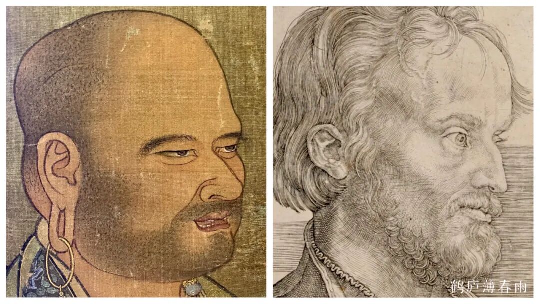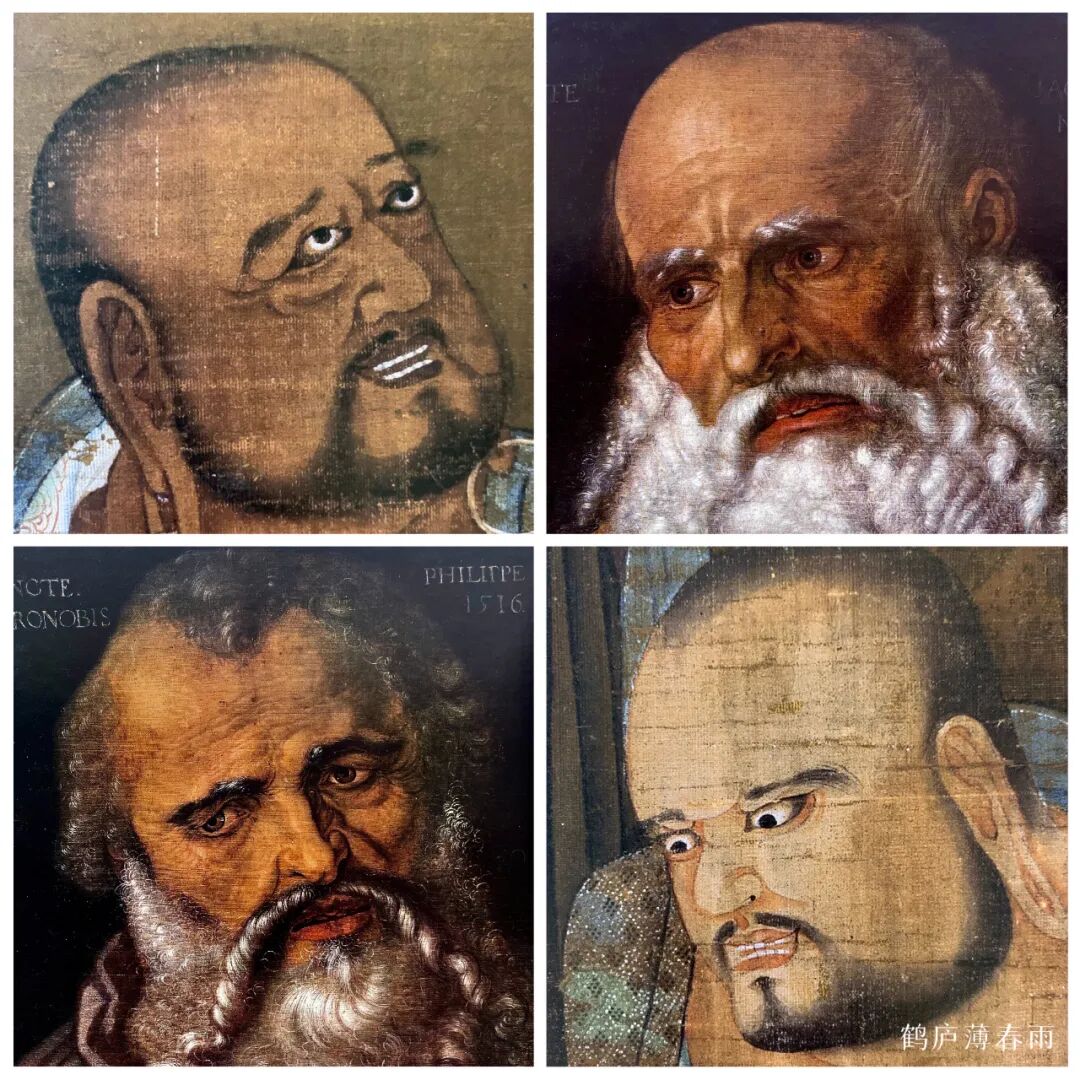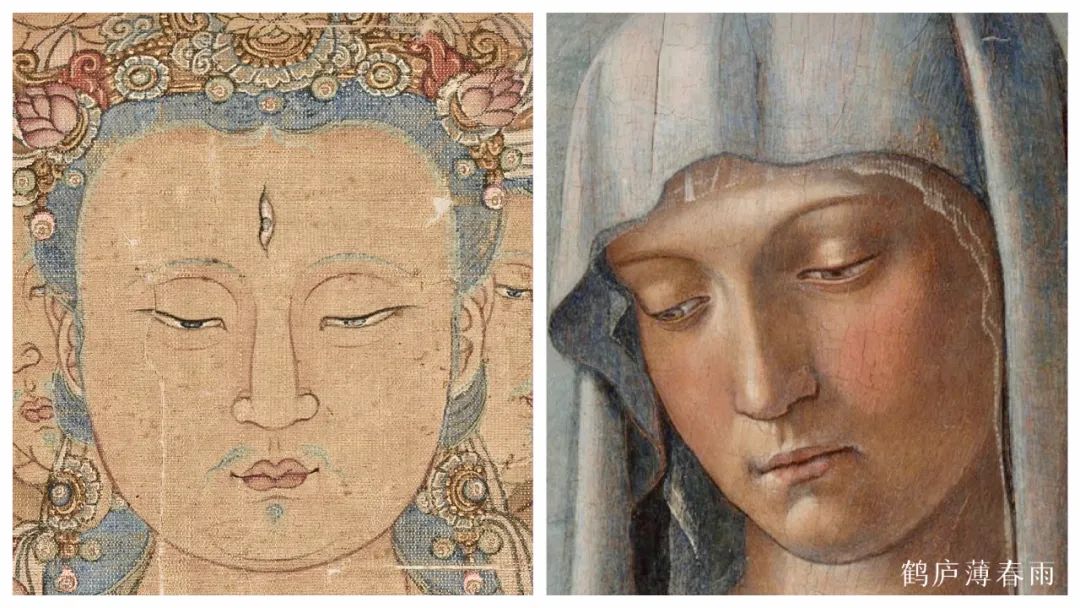 我国因为朝代更替频繁,致使许多壁画和挂轴损坏严重,能流传下来的绘画作品少之又少 ,不像西方油画和壁画那样存世量大,成体系、成规模,我们也不能以中西方艺术作品的数量多少来评判艺术上的高低,但仅仅以现存的少量壁画、肖像画、花鸟画来对比西方绘画,不难发现有诸多相通相近之处。中西方融合其实早已经潜移默化的开始了,虽没有确切的记载,但早已成了中西方艺术研究者们津津乐道的话题所在。
