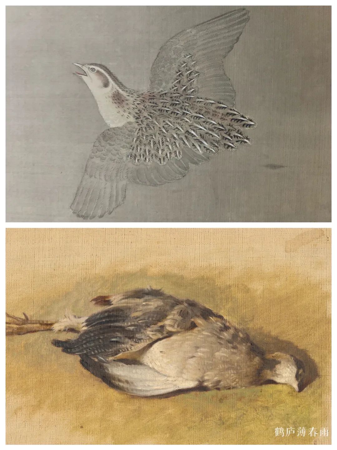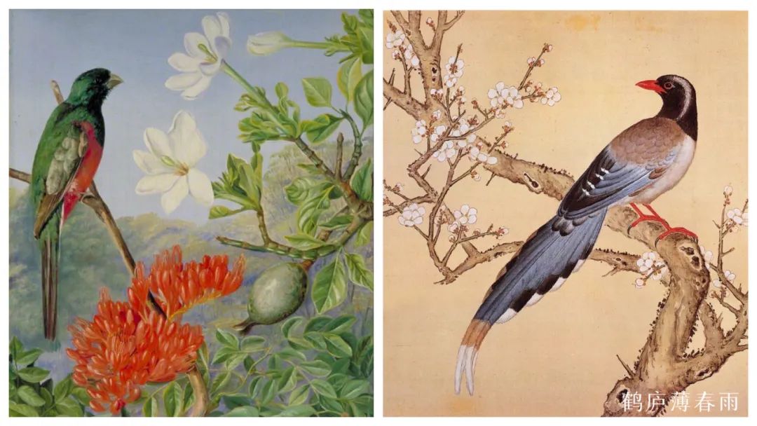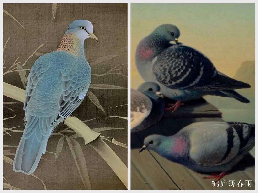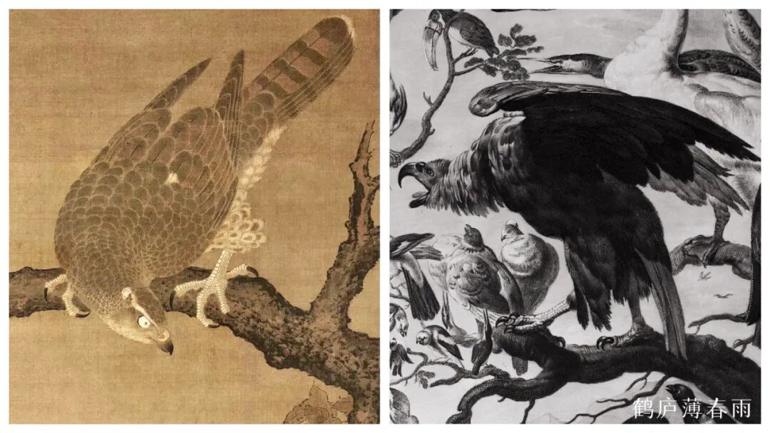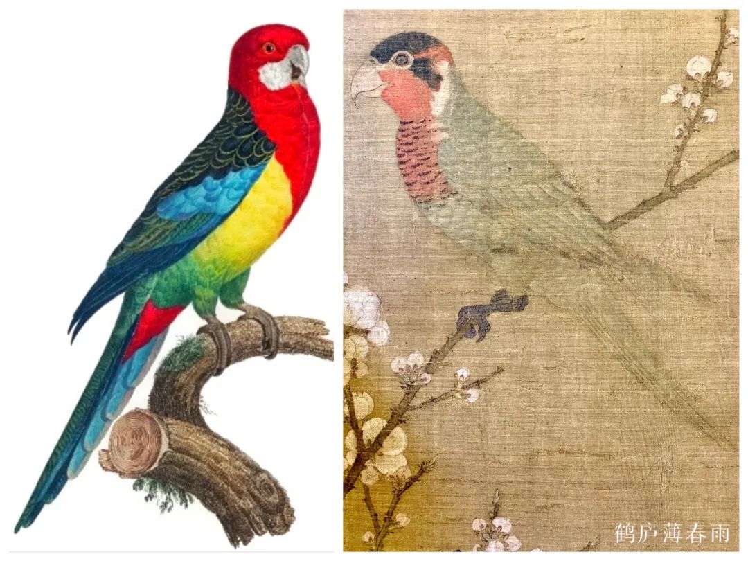 在花鸟画上,这种区别会更大。西方人画鸟类多是画标本,多画死去的禽鸟,死鸟不动,便于描摹写实,以写实法画植物也少有生意。因而所画翎毛色彩、光影和结构略显呆板。中国古人画翎毛在形准的同时,更注重生意,谓之“写生”,写之如生。用“可惜无声”形容最为贴切。这一点无法否认是高于西方写实的。比如丢勒画中绝大多数的鸟都是死的,标本式的,因为他们不知道中国画的“写生”之法。