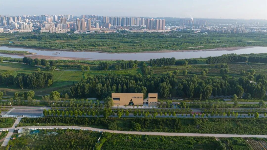 人在台上,眺望渭河和生态林地,阳光和绿植的柔晕在室内随风摆曳。去中心,非传统的构型,金属的感知撞击和张力延伸,光的主动参与,景观的渗透,空间欲望的体验,生成当代的空间语言;超越时间的质朴纹理在视觉上给人带来从大地生出、伫立的感受,传达鲜明的时空感;原始的场所功能在自然的尺度中呈现,正如建筑师郑东贤所言:当代性才是表达建筑原始性的方式。