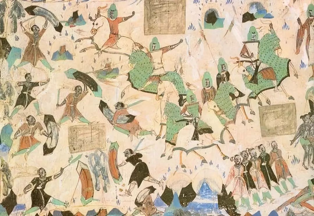 敦煌壁画《五百强盗成佛图》就连敦煌壁画上也画着当时的战争画面