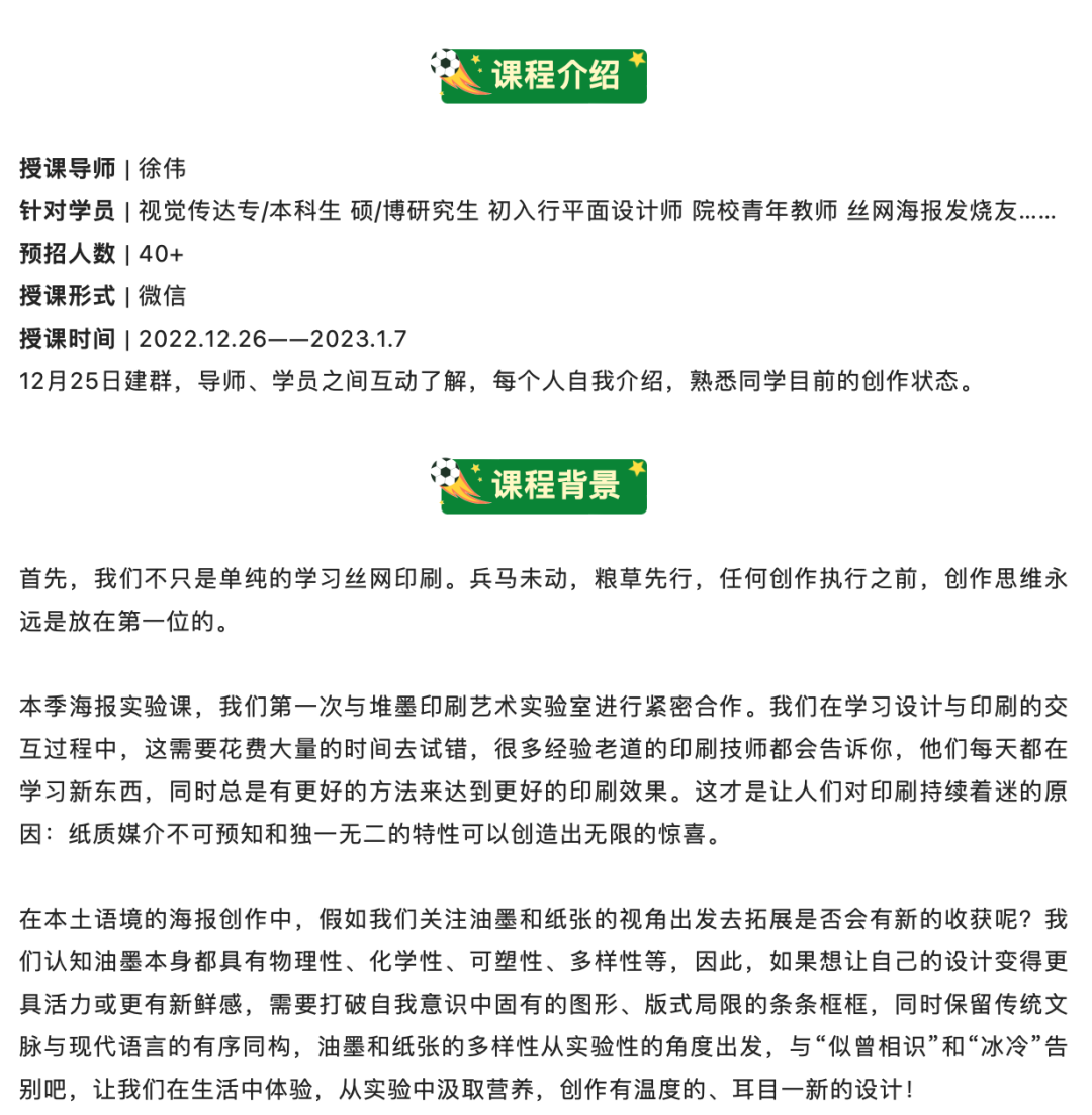大师班(Master Club)是以海报设计为主的设计师训练营,致力于带领学员做探知世界海报,品读大师,拓展思路,回归中国语境的训练。