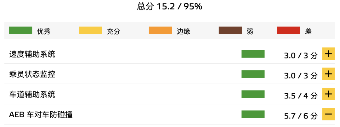 比如ET7在E-NCAP安全辅助一项得分率95%,几个细分评价几乎都是满分。