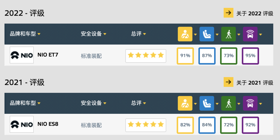 比如前日E-NCAP公布最新一期碰撞测试榜单,一批自主产品成绩突出的同时,蔚来ET7也成为了继ES8之后第二款在E-NCAP拿到五星安全评价的蔚来产品。