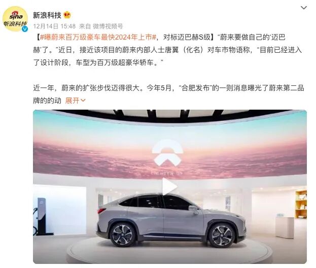 近日,蔚来要打造一款百万级豪车的消息喧嚣尘上。据蔚来汽车内部人士表示,蔚来的这款百万豪车对标迈巴赫S级,目前已经进入了设计阶段,如果顺利的话,该车型最早将于2024年上市发布,并在全球出售。