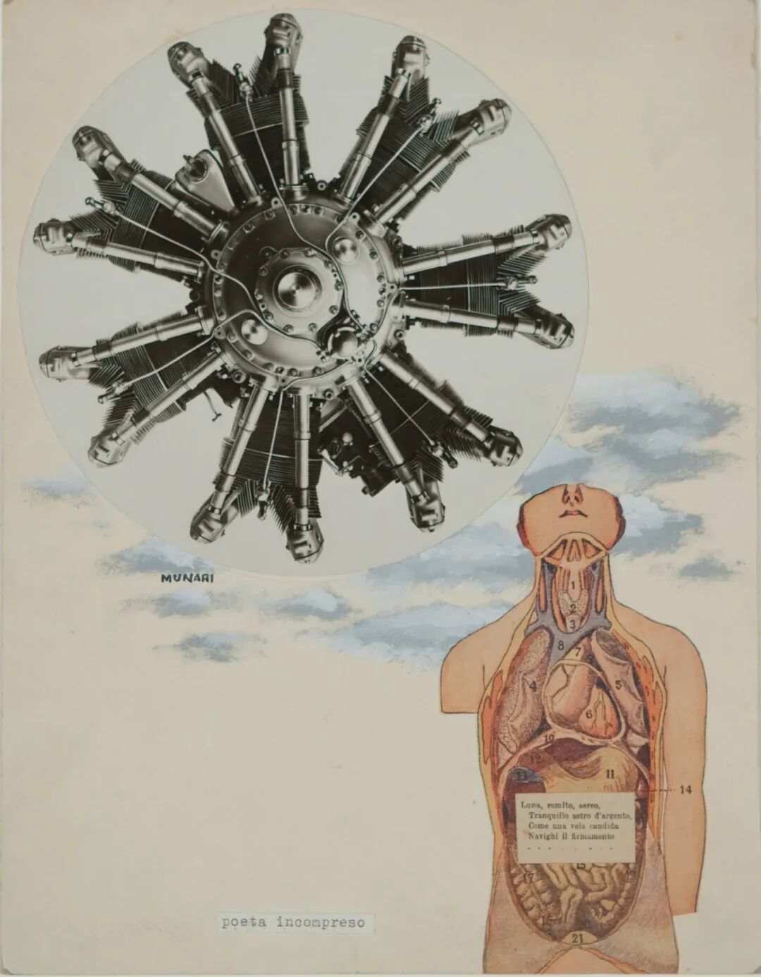 在“二战”后的艺术界和设计圈崭露头角之前,年轻的布鲁诺·穆纳里就已经成为20世纪30年代的未来主义运动中最多产、最不拘一格并颇负创造力的人物之一。对穆纳里而言,这是一个分裂和妥协的时期:一方面,他尝试绘画、雕塑、书籍设计、制图和陶瓷等艺术创作,另一方面,他的大部分时间在R+M平面设计工作室(与里卡多·卡斯塔内迪共同负责)从事商业图形设计工作。此外,穆纳里还兼任《意大利之翼》《时代》等意大利重要期刊的艺术总监。