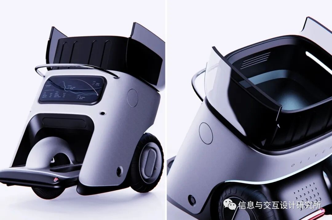 Oliver是一个三轮自动送货机器人。物品可以放置在Oliver前部的货物空间内,而后部拖车则提供了额外的空间来承载货物。可以在Oliver的触摸屏面板上对交付进行编程。