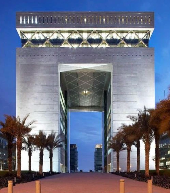 在著名的哈利法塔附近是另一座具有史诗意义和比例的建筑:迪拜国际金融中心(DIFC)的门楼。建筑由Gensler设计,仿照巴黎的香榭丽舍大街和凯旋门,于2017年完工。与相邻的阿联酋大厦和世界贸易中心位于一条轴线上,正如王储哈姆丹·本·穆罕默德·阿勒·马克图姆所说,它标志着迪拜的追求,即建立起一个金融市场来填补欧洲、远东和北美的国际金融中心无法弥补的缺口。