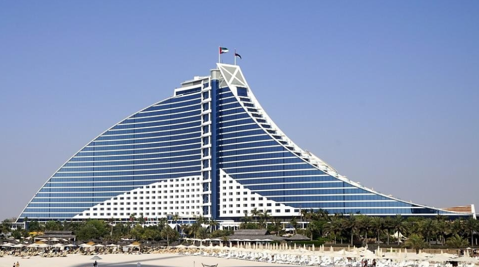 朱美拉海滩酒店波浪形的酒店设计与附近的帆形帆船酒店相得益彰,是迪拜最古老的建筑之一。帆船酒店和朱美拉海滩酒店所在的海滨原名芝加哥海滩,酒店于1997年首次开业时被称为芝加哥海滩酒店,这是同一地点的一家前酒店的名称。由总部位于迪拜的豪华酒店经营者卓美亚经营时,则被称为卓美亚海滩酒店。