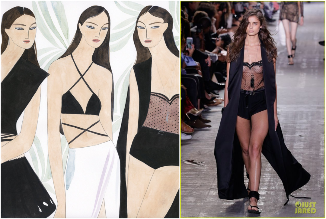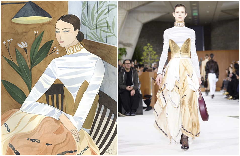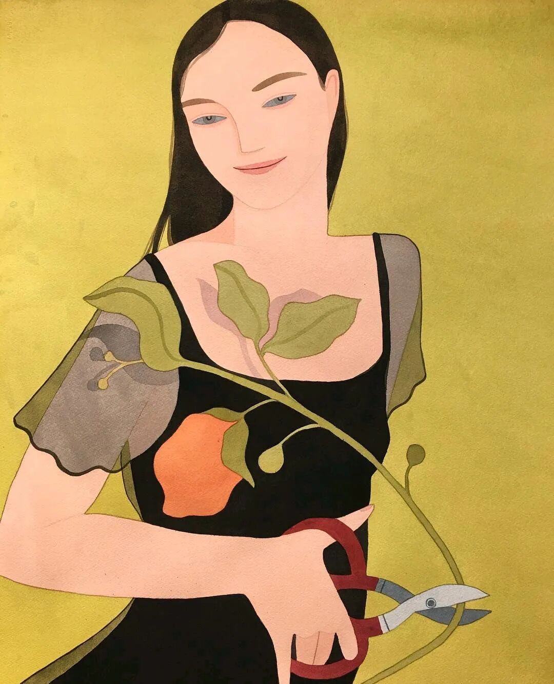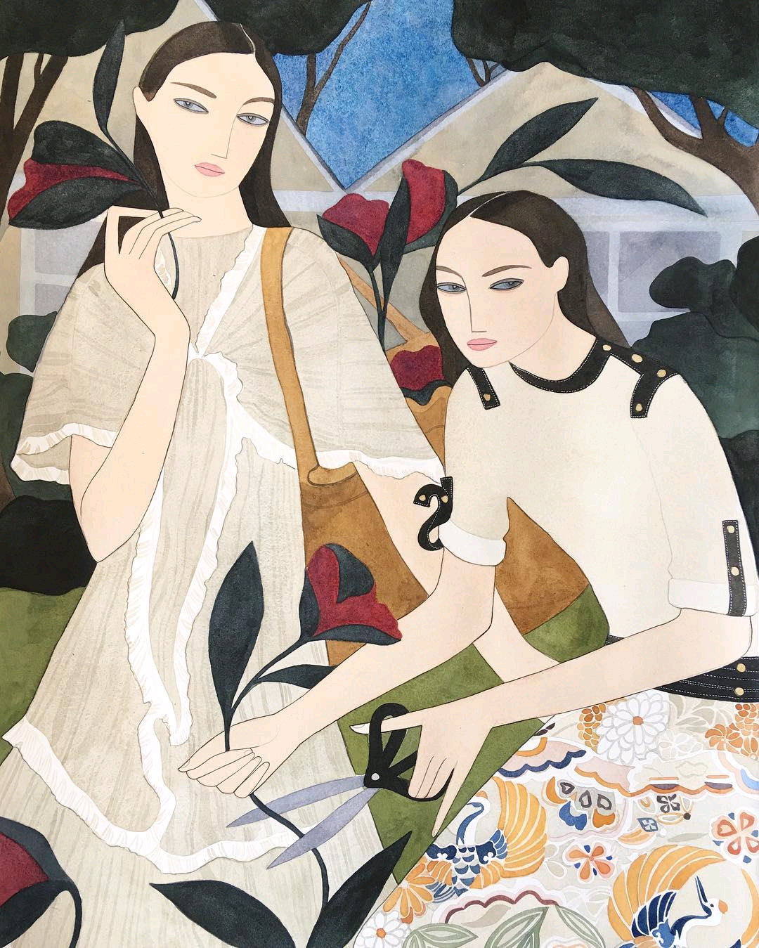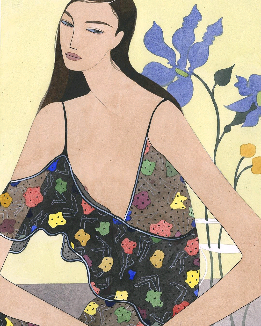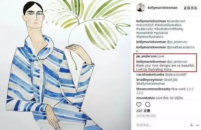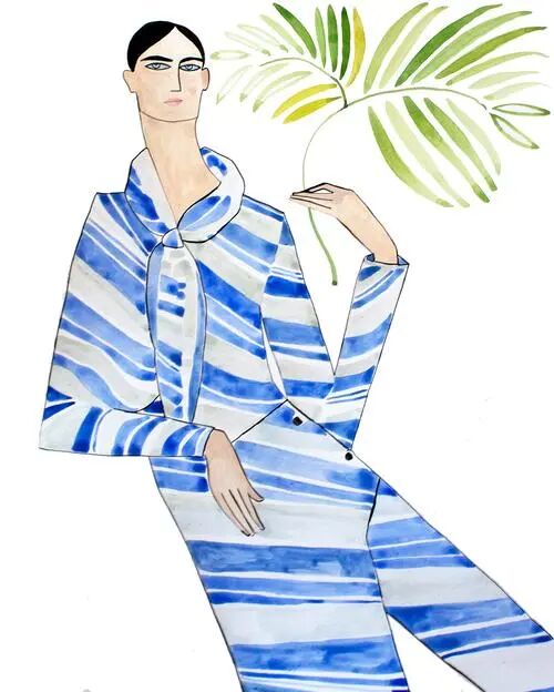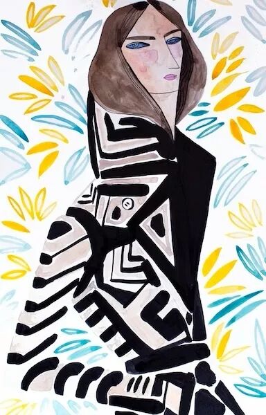 人物志2023-08-25 为裸女画上衣服后,她彻底火了丨金城 一位少女清晨外出, 马尾辫甩啊甩仿佛骑在马背上。 衣裙和手袋,墨镜、项链和饰扣, 像铠甲披挂在身上。 但在这一切的下面, 她是又轻盈又苗条。 ——耶胡达·阿米亥 《一个少女》 2015年5月18日,一个普通的星期一。 当大家都在转发类似“周一周一,奄奄一息”的打工人文案时,凯莉·比曼(Kelly Beeman)在INS上上传了自己的一幅插画。 这幅作品,灵感来自于自己在杂志上看到的一件J.W.Anderson(英国服装品牌)早春度假系列的衣服。 之前凯莉·比曼一直抱着“天啊谁会去看你画了什么”的想法,那天却在发布时鬼使神差地@了品牌的账号。 结果,这条推文居然得到了官方的回复——“love”。 创始人Jonathan Anderson(知名时尚设计师)更是亲自私信,邀请她进行新一季的插画创作。 就这样,本来只是做着餐厅侍应和西班牙文翻译工作的凯莉·比曼,一飞冲天,成为了横跨时尚圈和艺术界的超级新星,开始了自己的开挂人生。 与大多数受过专业学习,科班出身的插画师不太一样,凯莉·比曼并没有在正规的教学环境下学习过绘画,在大学时,她念的是与美术毫无关联的社会学。 是母亲,成就了她的艺术之路。 比曼的母亲本职是一位美术老师,所以她小时候经常会看着母亲作画,一看就是好几个小时。 四五岁时,母亲开始教她如何调色、上色、覆盖,自此,水彩颜料成了她的童年玩具。 凯莉·比曼画室一角 “我有三个姐妹,我们曾经一起画画,一起创作长篇故事,这可以让我们乐在其中好几个小时。” 长大后,比曼并没有将绘画这项技能荒废,而是在平时不断练习,打磨,也由此逐渐形成自己特有的绘画风格。 但她从未想过成为时装插画师,只是将画画作为个人爱好不停地画着。当时的主题也都是以黑白裸体人物为主,专注于身体的形状和线条。 后来,比曼尝试给她们“穿上”了衣服,拥有了色彩。 因为她渐渐发现,服装/着装代表了品位、状态与审美,是一个人的自我表达,而色彩和服装能让她的画拥有更多发挥的空间与可能性。 自此,黑白裸女变成一个个缤纷艳丽的女性,她们眼神放松,表情平静,身穿高级衣服,坐在精心打造的家具上。 虽然主角是一个谜,但每幅画仿佛都在诉说着什么。 风格的改变,也为凯莉·比曼之后的成名奠定了基础。 与J.W.Anderson的成功合作,让她一时间成为了时尚界最受欢迎的插画家之一。 与Louis Vuitton、Doir、Burberry、KENZO 虽然大牌永远不会缺选择,但比曼却能让它们放弃大把大把的备选,心甘情愿地等她的排期。 这都是因为无论与哪一个品牌合作,她都能在保持强烈的自我风格的同时,将品牌的魅力进行独特的阐释—— 将LOEWE的高级服饰从秀场换到充满日常感的插画场景中,让人看到品牌不一样的魅力 一手轻托下巴,一手夹着香烟,身穿DOIR的女子就这样斜坐在椅子上,表情淡漠,画面充满了故事感与想象空间 不羁自由的ALEXANDER WANG有了几分清冷的酷,充满了独立女性之美 如今,凯莉·比曼笔下这些表情克制的优雅角色已经成为了时尚插画界一股时髦标记——从迪奥高级时装大衣的毛皮袖,到Lemaire的版画,及合作明星们的原创潮牌,随处可见她的影子。 人们对此笑言,没有用过她的插画,简直都不敢说自己是顶流品牌~ 陈冠希亦是迷弟之一,除了收藏凯莉·比曼的画作,还邀请对方为自己与妻子秦舒培作画 通过一个个优雅且冷酷的摩登女郎,凯莉·比曼描绘了一个由服装、日常用品、自然和室内空间组成的生动世界。 而不管是简单的黑白轮廓裸女,还是完全由水彩呈现的高级时装插画,她的作品里,唯一不变的是源自上世纪的审美态度,西方繁花似锦的浓烈背景以及模特独特的东方气质。 在时装插画的作品之中,往往常见高饱和度和强对比的视觉效果。 可凯莉·比曼却频繁使用被人称为“性冷淡风”的莫兰迪色系,使得画面清透而舒适,复古而优雅,拥有不落俗套的美感。 纵然色调内敛、温和,却丝毫未削弱作品的锐利,反而在同质化的作品中脱颖而出,让人感受到一种节制的高级美感。 她的画风或许并不讨巧,也绝非大众眼中所想象的时尚插画风格,甚至时尚插画中人们关注的模特元素,都长的并非绝美姿色。 但其刻画的人物总是带有着强烈的东方气质,如修长的脸型、丹凤眼、柳叶眉以及冷静睿智的神态等,强烈的辨识度让人印象深刻。 此外,以简洁的线条勾勒出人物轮廓,运用宁静和谐的暖色调来突出人物内敛之美的手法,更是仿佛让人看到了毕加索的风格神韵。 对此,凯莉·比曼曾表示毕加索对她的艺术创作影响颇深,尤其是毕加索蓝色时期的作品,对她的启发最大。 1901年至1904年期间,身在巴黎的毕加索正处于人生的低潮,这期间他的创作被称为"蓝色时期",是他第一次形成自己的风格。 苦痛、悲惨、忧郁、孤独的蓝色,充斥在毕加索的画里。 而凯莉·比曼相当一部分作品都使用了毕加索的蓝色色调,并在人物塑造上借鉴了这位大师的手法,从而赋予角色典雅复古的韵味。 怪不得会有人说,当欣赏她的插画作品时,就如同走进了一间毕加索风格的博物馆。 高级的莫兰迪配色,具象的毕加索风格,再加上冷峻的女性形象,组成了凯莉·比曼的艺术底色。 在她的笔下,描述了女性千百种姿态——清冷、娇媚、柔软、优雅、淡然,她们一身锦衣,穿梭于光怪陆离的都市生活之中,诉说着属于自己的故事。 凯莉·比曼