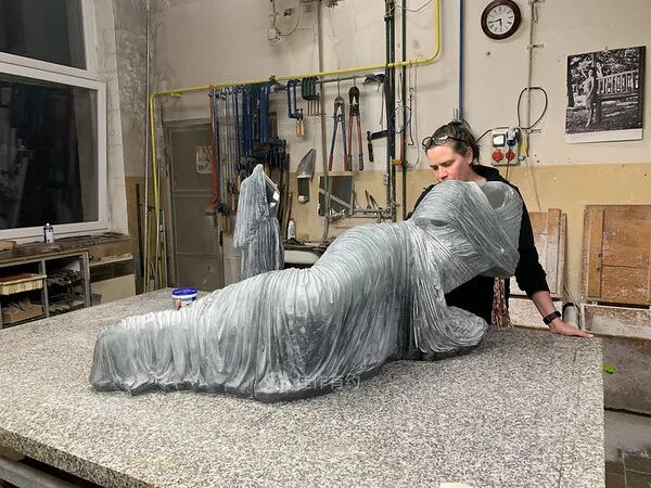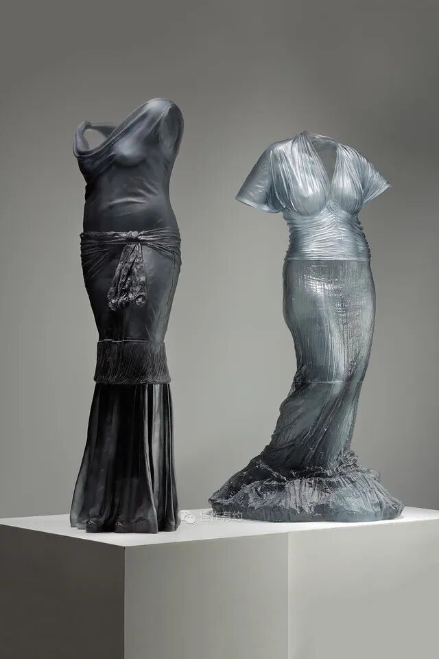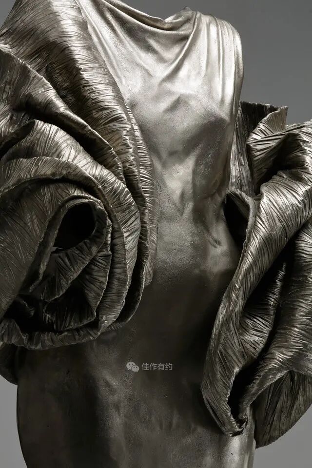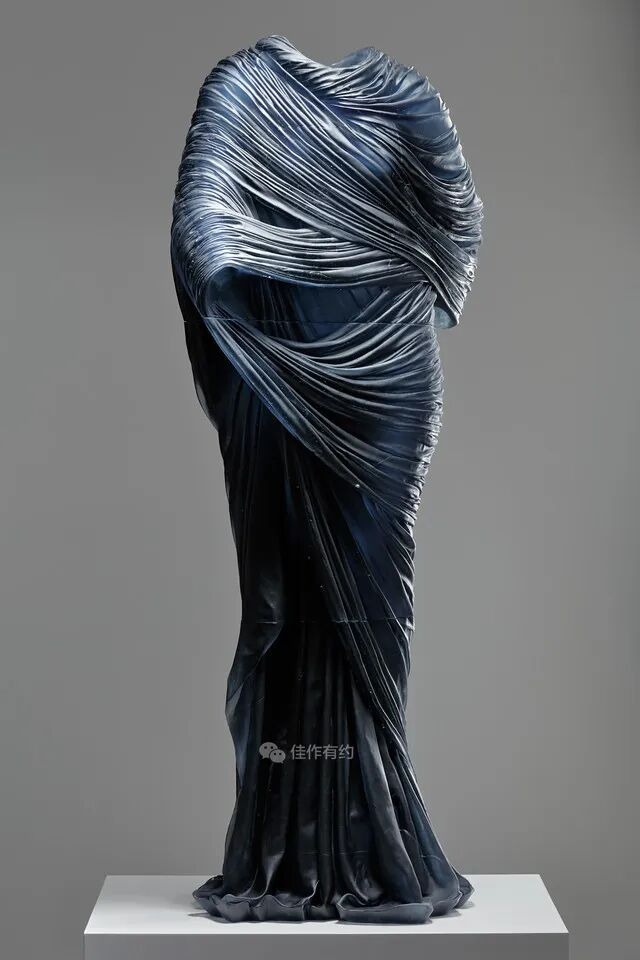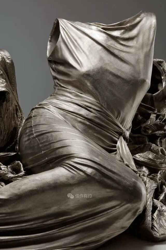 以夜之美为灵感的全新作品。我称这些雕塑为夜曲:黑暗、诱人和崇高。它们没有女性形式——从半影服装中升起,成为黄昏的形象。他们以女性裸体的传统为基础,探索人文主义与色情、物质与空灵、身体与精神之间的紧张关系。这些人物既是强烈的身体——肌肉和肉体紧贴着面料——但又是虚幻的:人物不存在,仅通过压在衣服上的形状暗示。