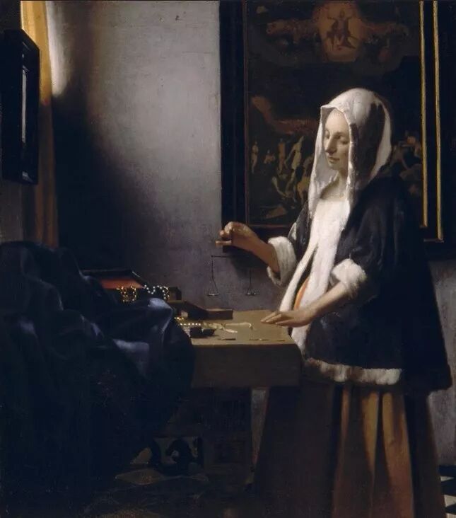 Woman Holding a Balance (1665)《持天平的女人》现藏于华盛顿的美国国家美术馆