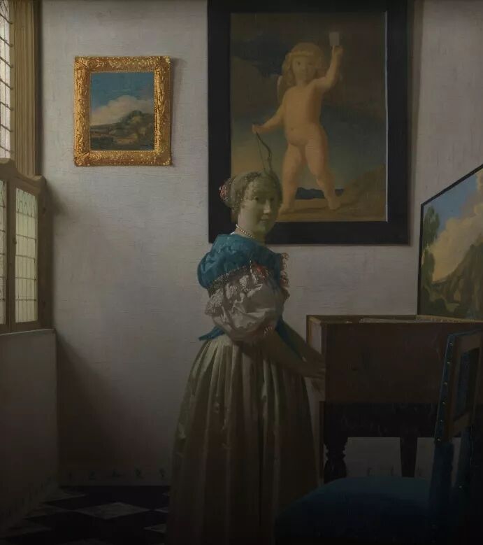 《站在小键琴前的年轻女子》藏于英国伦敦的国家美术馆 (National Gallery)