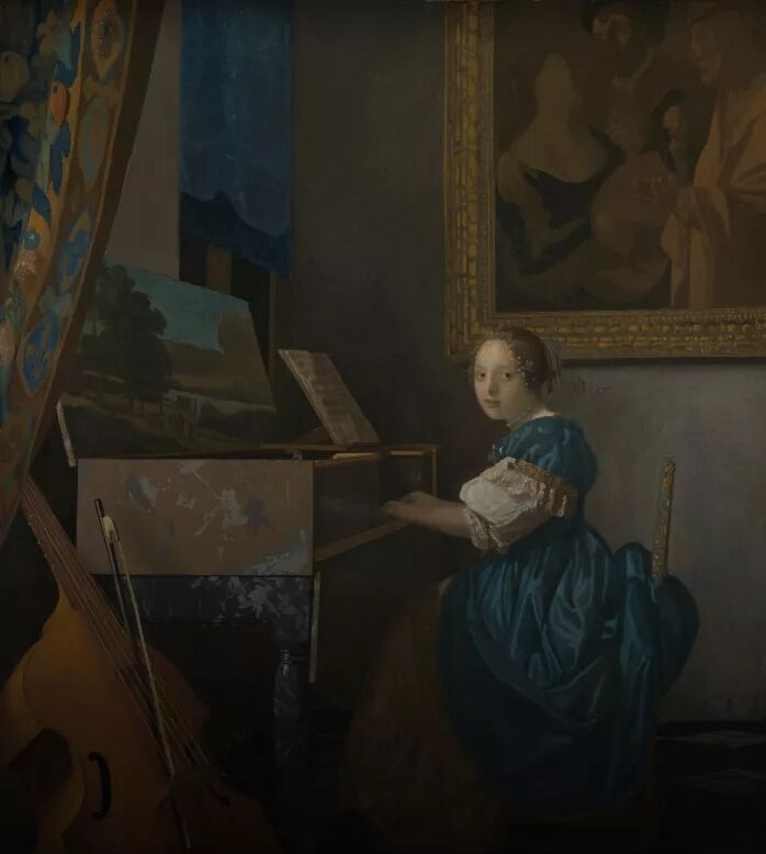 《坐在小鍵琴前的年輕女子》藏于英國倫敦國家美術館 (National Gallery)