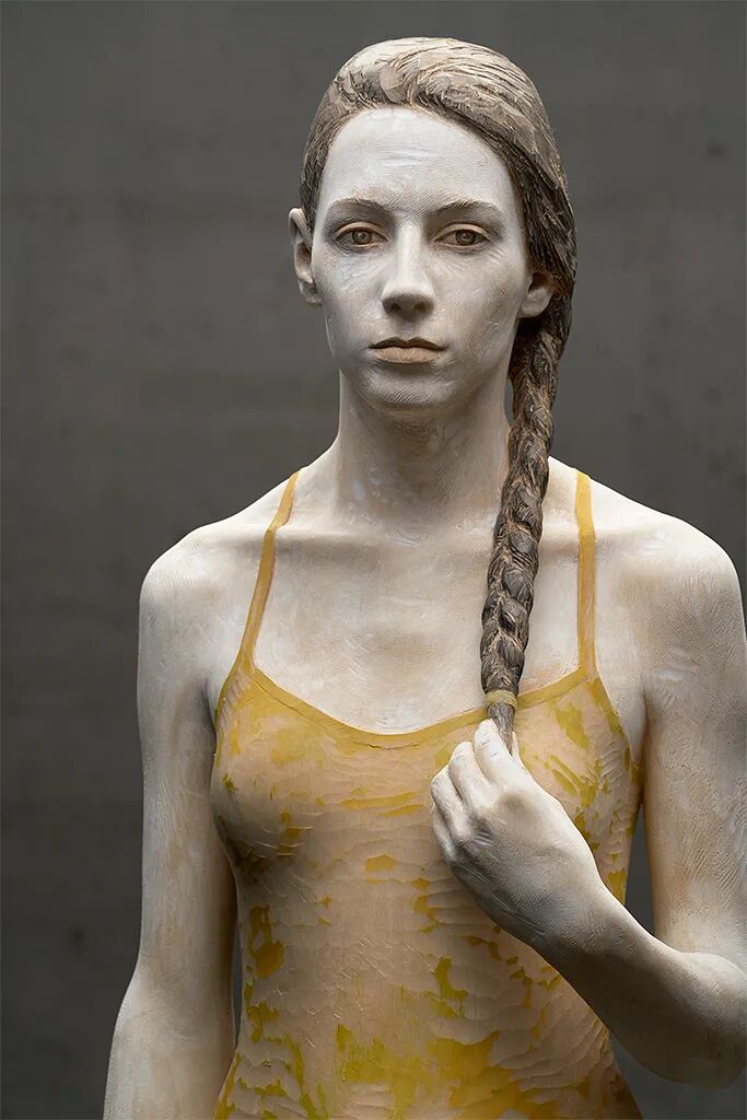 木雕艺术家Bruno Walpoth,被誉为本世纪最伟大木雕艺术家之一,也是意大利的国宝级雕塑家, 于1959 年出生在布雷萨诺内。原本出身木雕家族,他将四百多年的木雕历史与当代雕塑的技术和形式相结合。Walpoth 用木块雕刻真人大小的人物,并用丙烯酸涂料完成雕塑。他反复覆盖和打磨表面,以掩盖木纹的痕迹,并获得半透明的皮肤状外观。他从哥特式晚期和文艺复兴早期的意大利木雕中汲取灵感,Walpoth 强调人类的感性而非形式。他选择捕捉一个瞬间,而不是通过每部作品讲述整个故事。参加过诸多个展和博物馆展览后,Walpoth 的作品在国际上被广泛收藏。