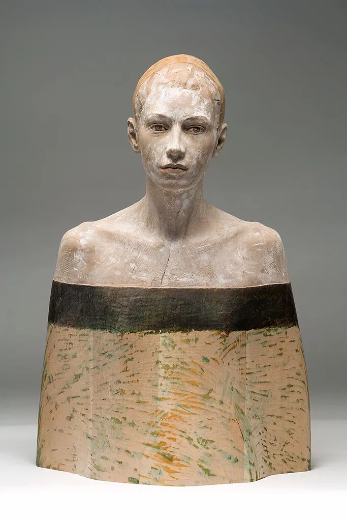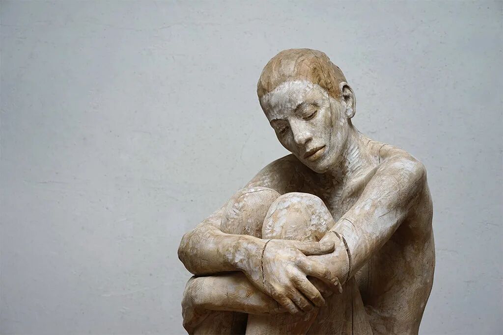Bruno Walpoth作品简单干净,线条细腻,将木头表面特殊处理,呈现出肌肤般的苍白质感,人的神态与形态展现的淋漓尽致,彷佛注入了灵魂,充满着生命的气息。