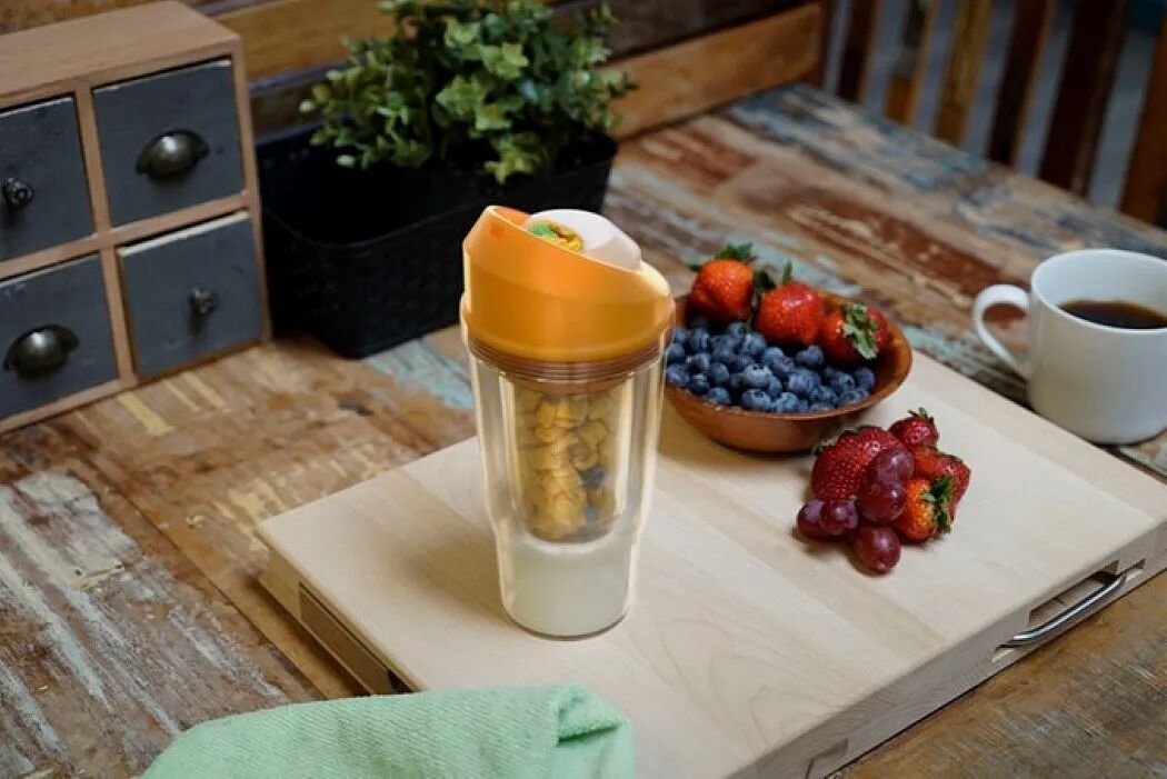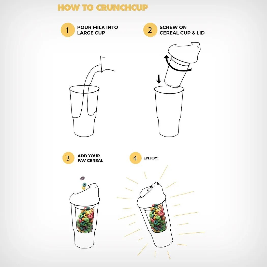 上班路上想来一杯营养又简单的麦片牛奶吗?Crunch Cup由内外容器组成,分别用于盛放牛奶和麦片,顶部双层盖子可以让你一边喝牛奶,一边咀嚼依然酥脆的麦片。
