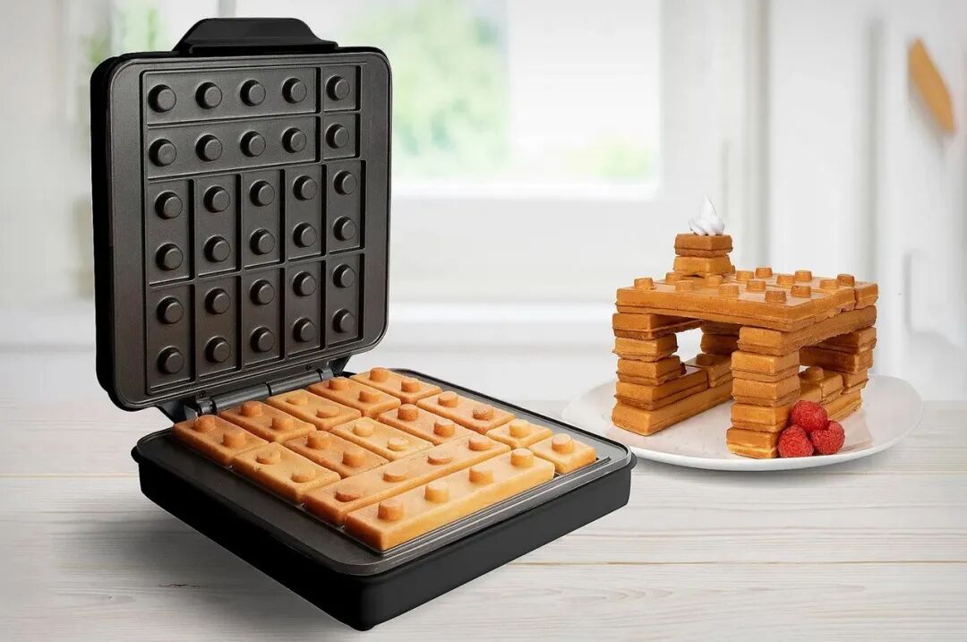 这款华夫饼机的加热板被设计成类似乐高模具的形状。由它烘烤的华夫饼表面有螺柱,下部具有中空区域,这样华夫饼就可以互相堆叠,给你的早餐时间带来乐趣。