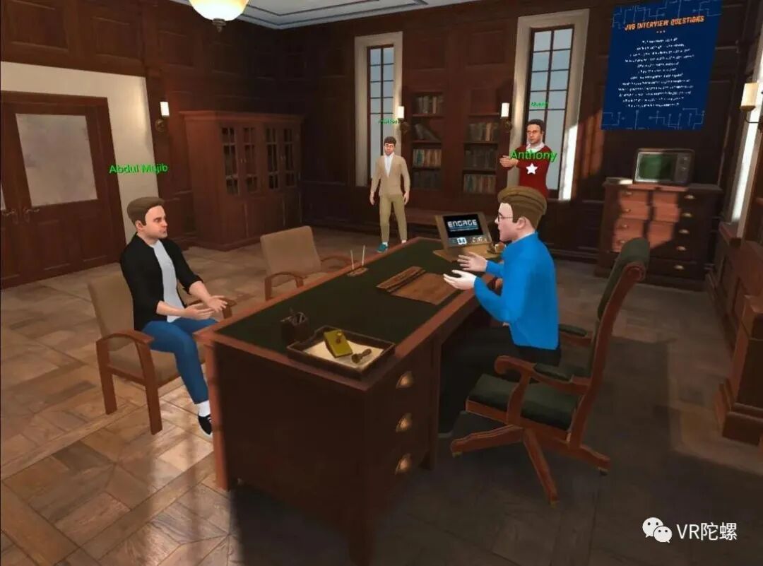 虚拟工作面试只是研究团队在为期8周的课程中涵盖的众多主题VR体验之一,该团队在ENGAGE的帮助下开发了定制场景。ENGAGE是一个虚拟平台,能够模拟人们在物理世界的互动方式,用于多用户活动、协作、培训和教育。