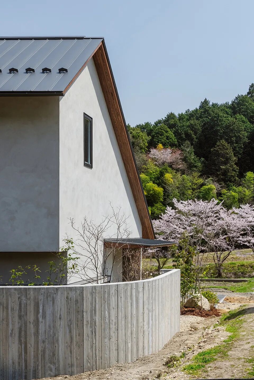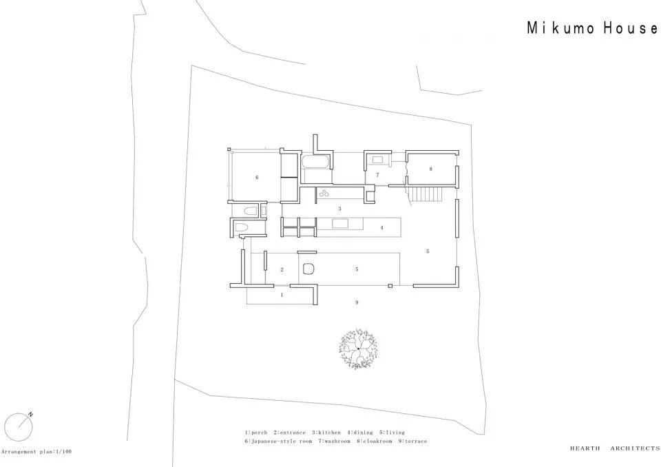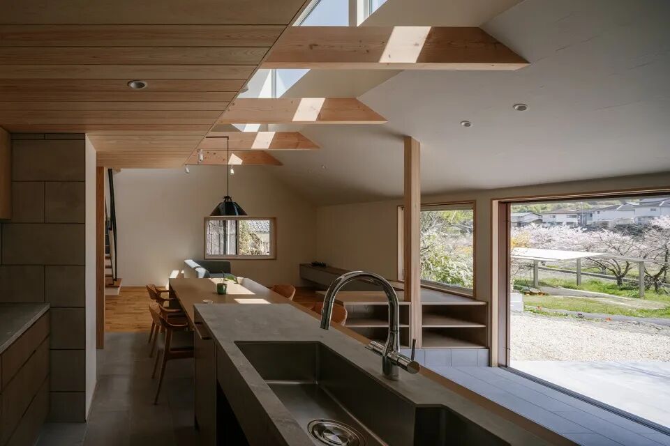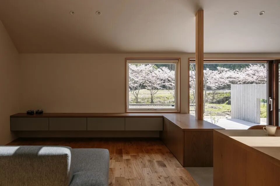 该项目是独栋住宅,位于种有樱花树的区域。其平面和布局皆遵循:“这座房子的建造,是为了欣赏仅仅盛开两周的成排樱花树。”