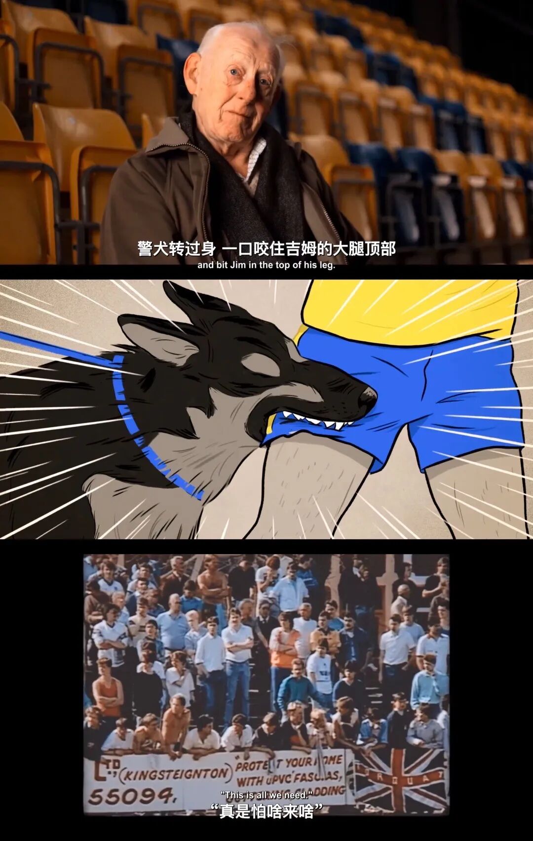面对情绪逐渐高涨的球迷,警员们将警犬带出球场,目的是为了维持秩序,防止事态恶化,却没料到非常戏剧的一幕发生了。