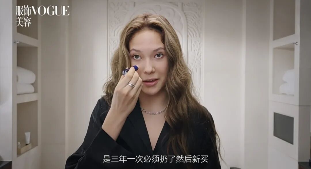 另外,在最近的vogue视频中,谷爱凌展示了自己的7分钟派对妆容,她拿出了自己12岁时的遮瑕膏,并说自己也在学习,遮瑕膏应该要三年一换。