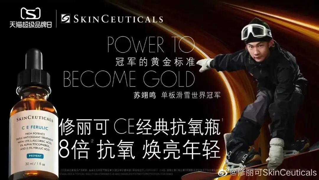 今年2月7日,苏翊鸣获得首个冬奥会银牌之后,修丽可正式官宣其为品牌大使。