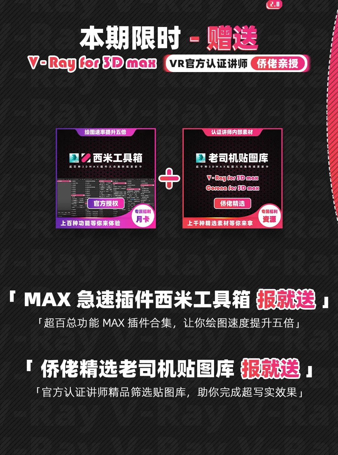 这两套《客餐厅写实渲染-实战课》是一套3DMAX软件实操课,分别搭配V-Ray、Corona,用一个案例,帮你梳理室内设计软件涵盖的8大巨头软件工作流。