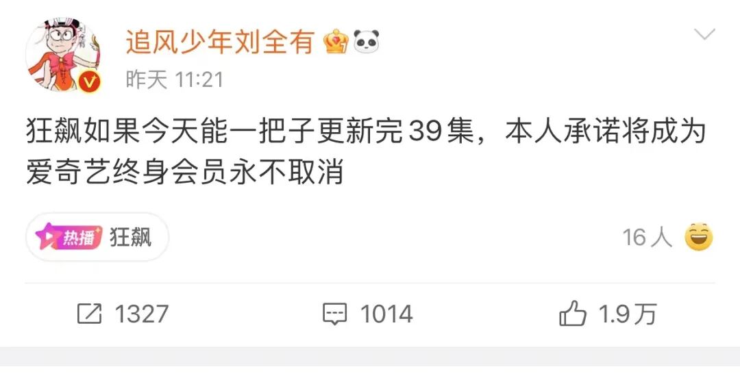 微博搜索栏打出“狂飙”,得到的搜索结果