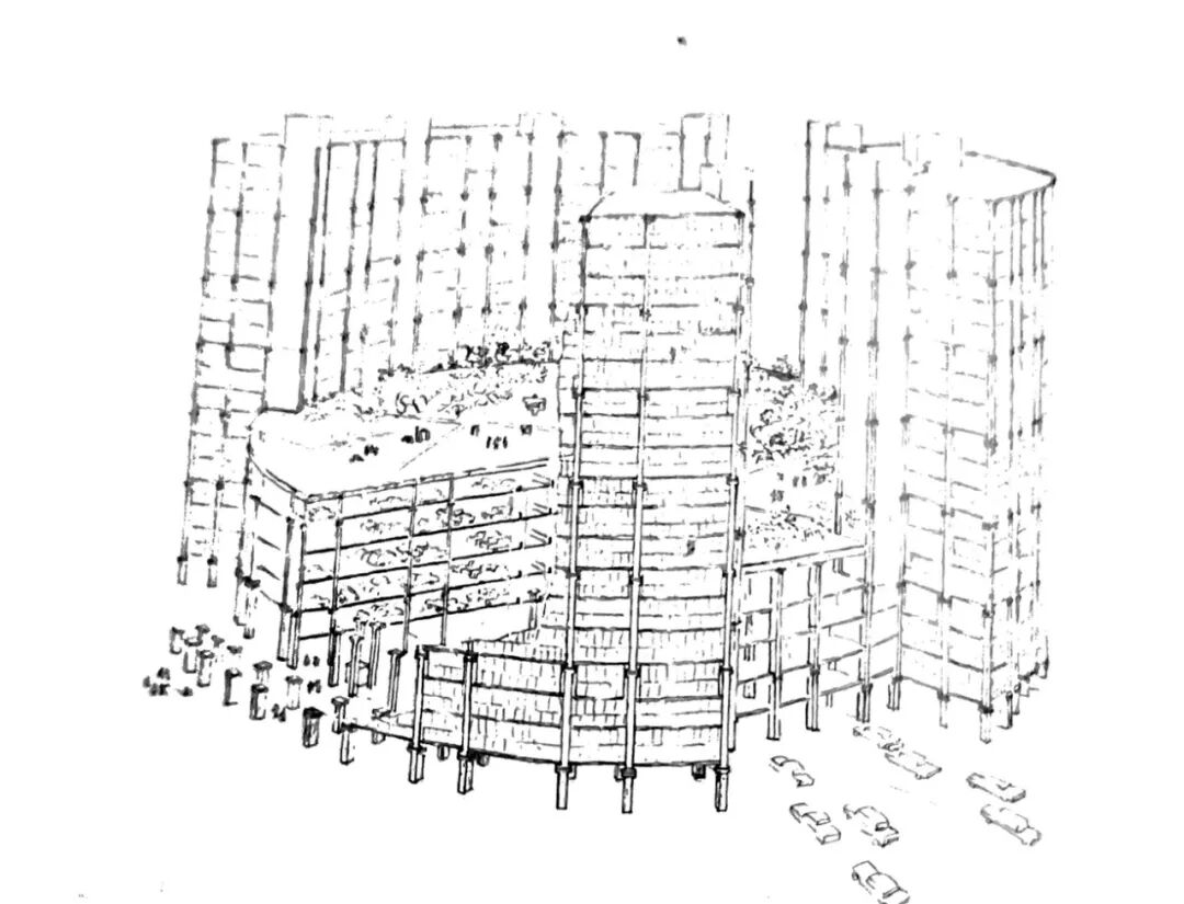 混合停车场设计,费城市民中心方案,路易·康,1956-57
