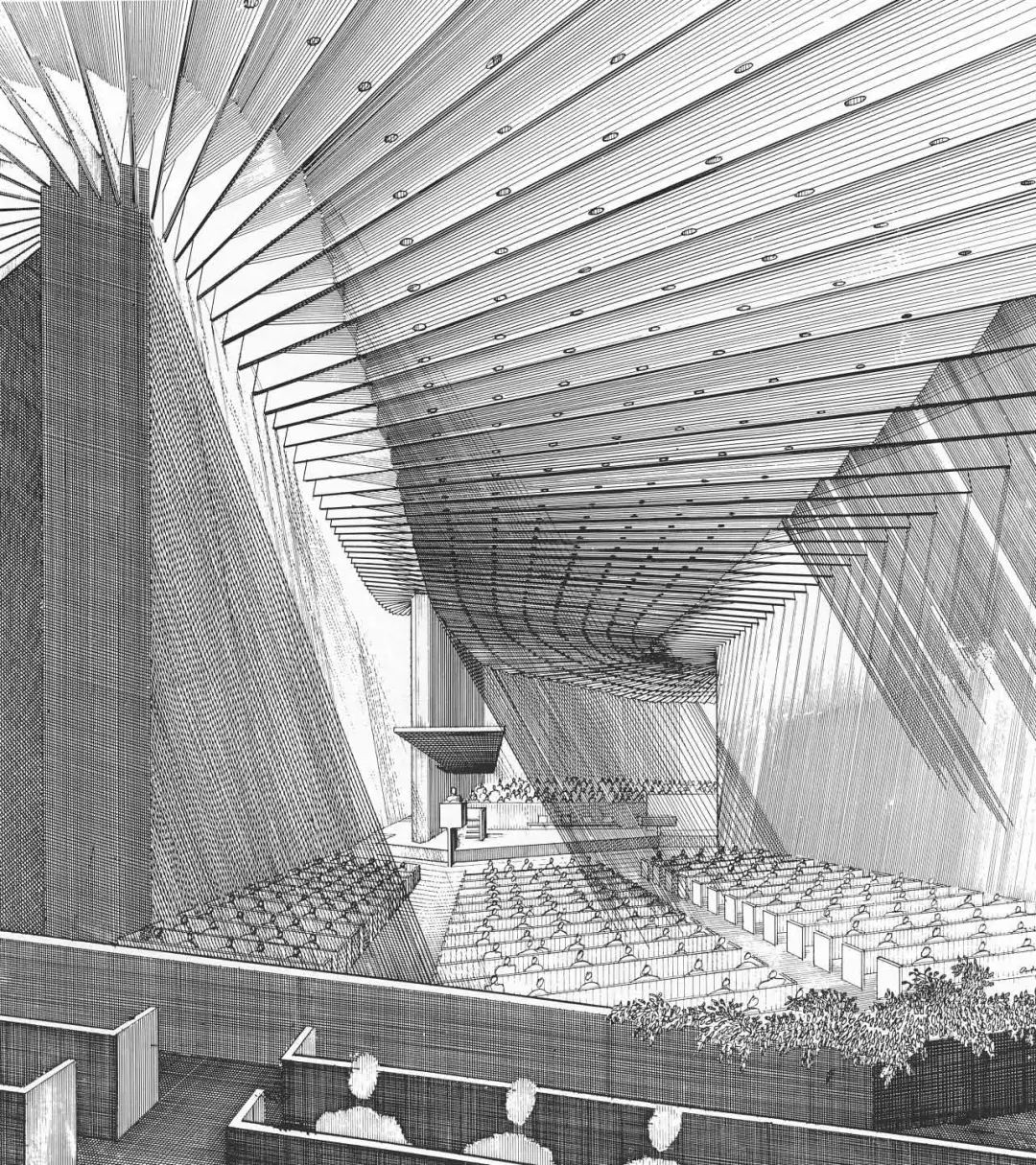 或者我们也难以想象康在项目中的参与程度。你通常不会期望办公室的负责人会为一个项目绘制从最初的概念草图到最终的砂浆接缝的全部图纸,但康做到了。