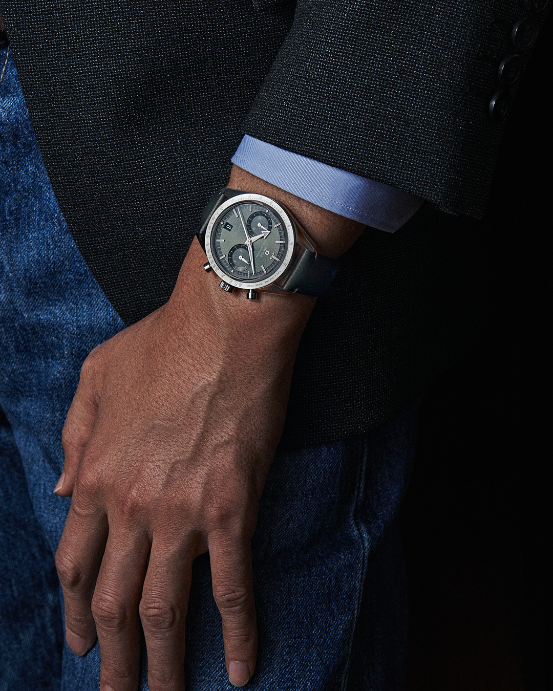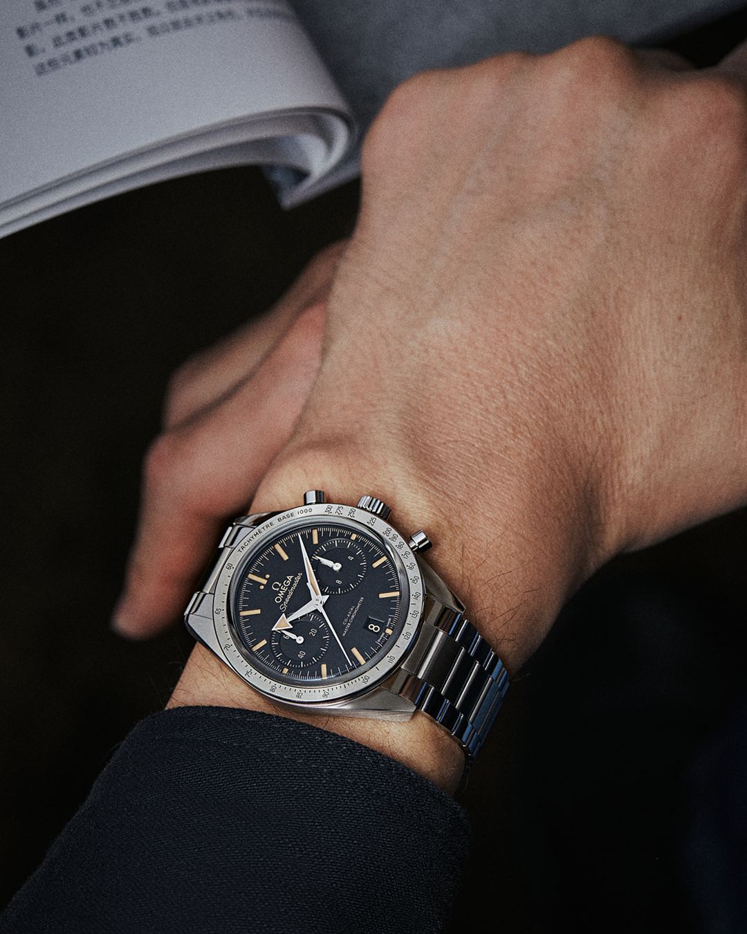 欧米茄超霸’57腕表搭配黑色表盘,拍摄 © Chienyun