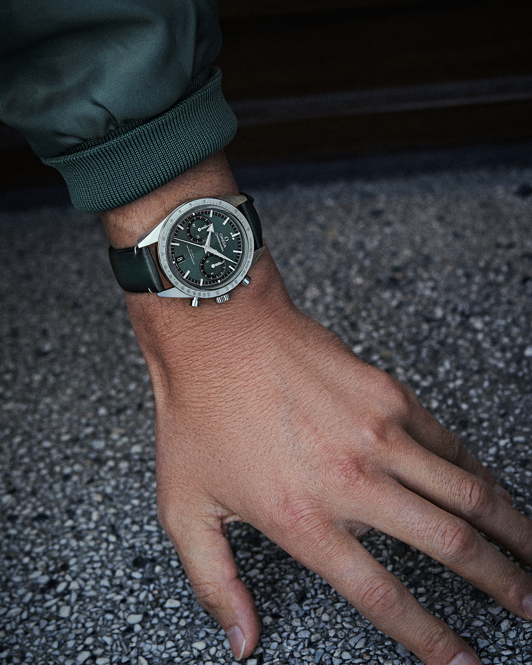欧米茄超霸’57腕表搭配绿色表盘,拍摄 © Chienyun