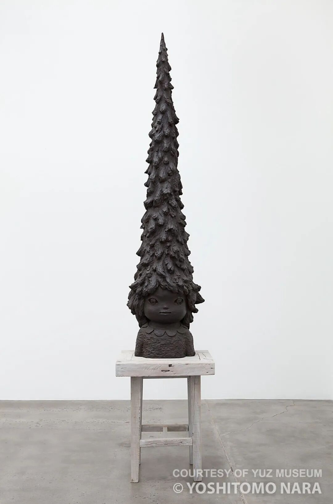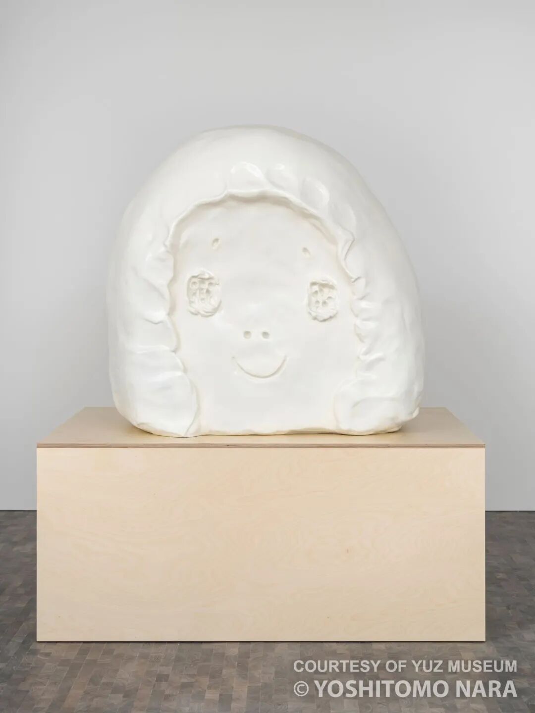 情感上深受灾后创伤触动,奈良转向⼀种更加沉思内省的创作模式,开始制作陶器并铸造圆形或椭圆形的⼤型青铜头像。