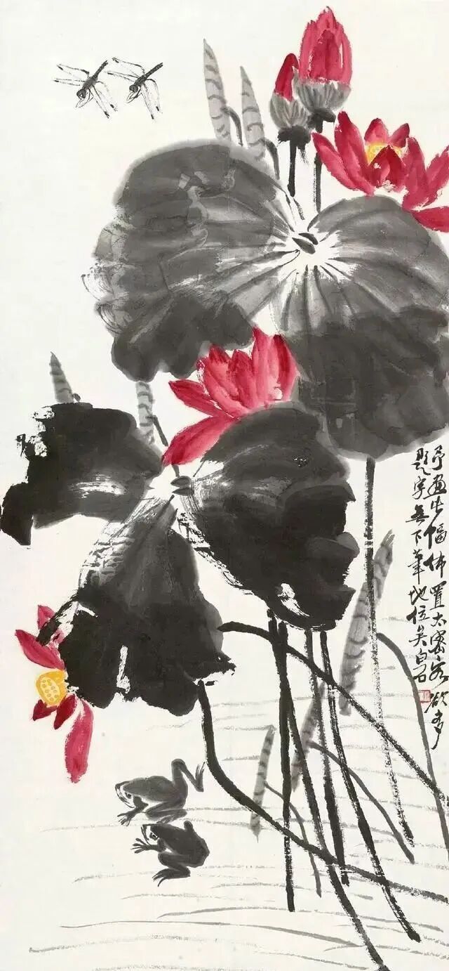 那么齐白石是怎么画的呢?他是以淡彩罩染,细筋如丝的刻画方法把其引入画中,生动地呈现贝叶的薄纱感。给人以美的享受。