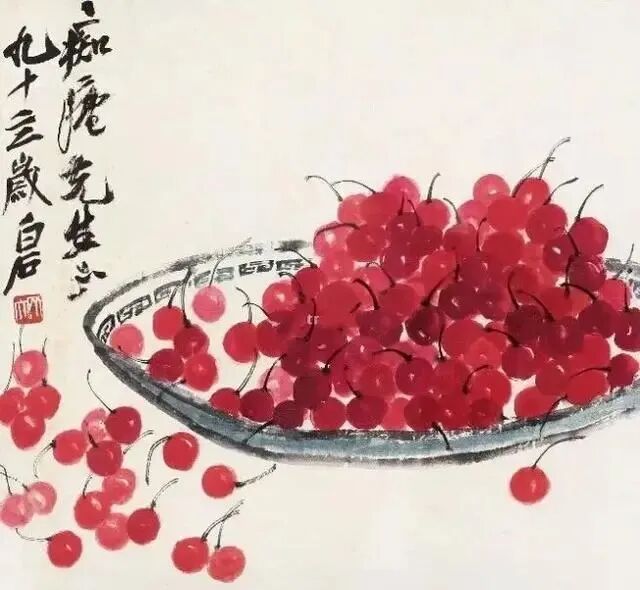 听说齐白石在家乡屋前曾载石榴树,其有诗云:“七载榴花背我开,还家先到树边来。眼昏难数花多少,未白头时手自栽”。