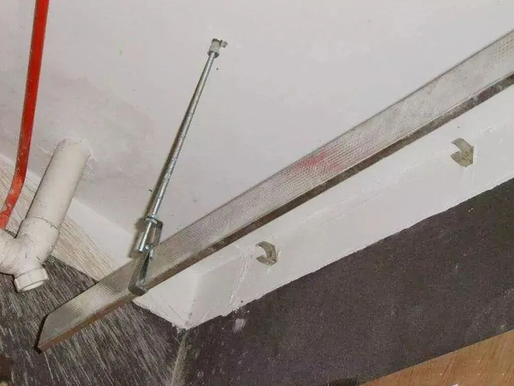 沿墙或柱弹出的水平龙骨线把L型边龙骨用自攻螺钉固定在墙面预埋木砖上,再用塑料胀管自攻螺钉与墙面固定。