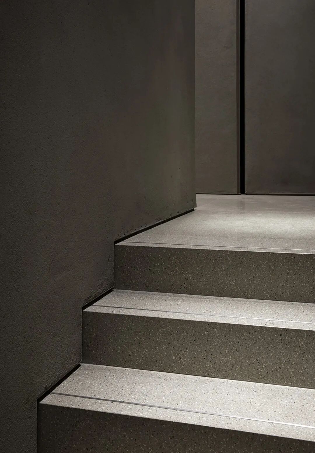 受限于当地的消防法规,设计师采用封闭的中央楼梯连接四层楼。借助中性的不锈钢楼梯,将人们带入一段不同层次的旅程。