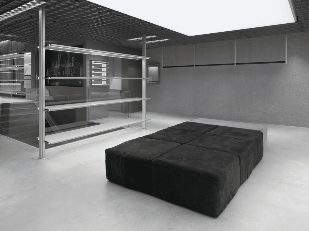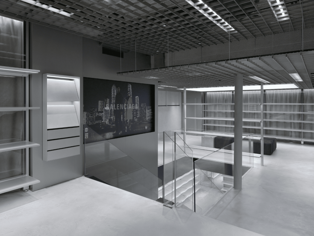 服装界的一线奢侈品牌Balenciaga巴黎世家,最擅长使用工业设计的风格,通过线下店空间向消费者传递品牌的时尚美感。