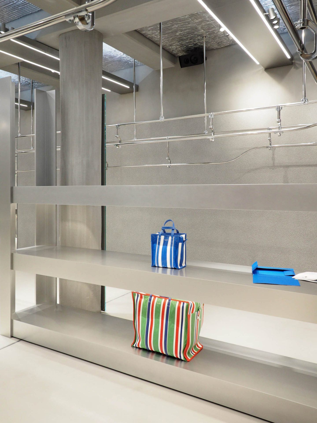 在荷兰,Balenciaga品牌依旧延续工业风格设计,以黑灰色为主色调,应用在占地近 200㎡的阿姆斯特丹旗舰门店中。