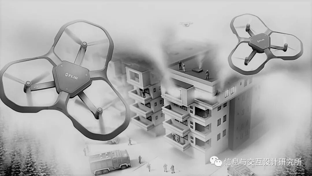 三旋翼无人机的设计可以分为三个元素——螺旋桨、底部曲棍球形状的 FLIR 热成像相机和顶部的可拆卸/可更换电池组。在现场,无人机可以被编程为运行预先确定的路线,并将不断巡逻特定区域,分析结构火灾,让救援队清楚地了解火源、建筑物的布局,甚至可能识别潜在的安全进入和疏散路线。