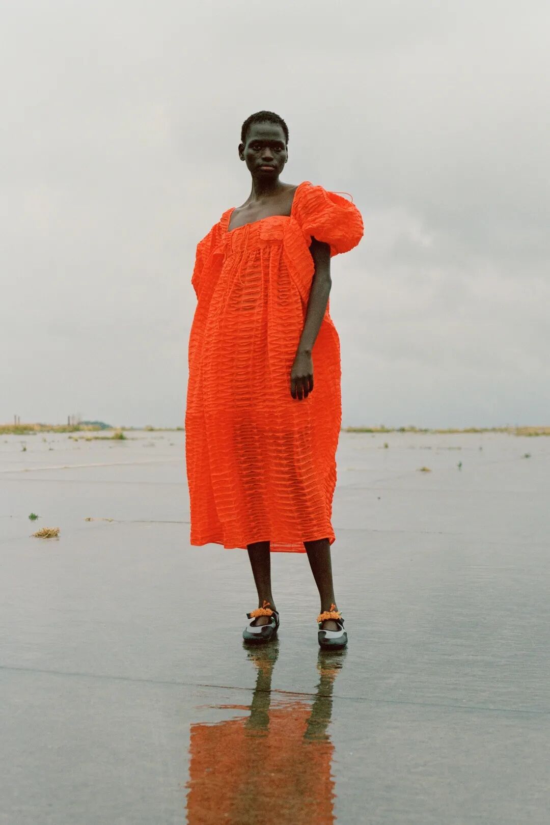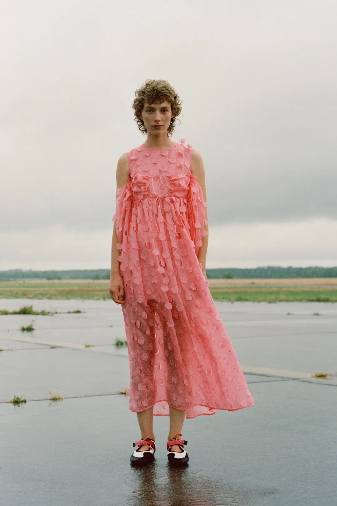 在Lookbook的拍摄中,Cecilie Bahnsen还遇到了一些小插曲,麻豆被困在倾盆大雨中,而雨过天晴后水坑中反射出来的七彩的光,让人看到了一丝希望的力量,同时也是Cecilie Bahnsen珍视的东西。